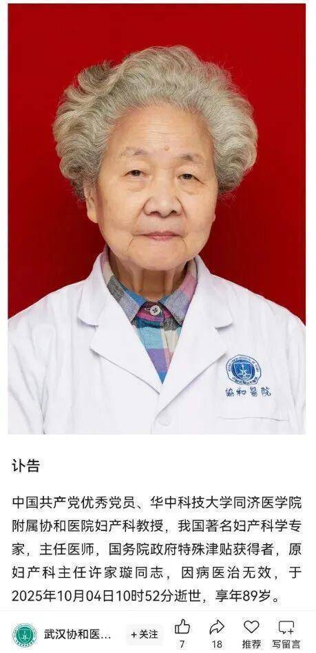 据华中科技大学同济医学院附庸协和病院妇产科音讯,中国共产党优秀党员、华中科技大学同济医学院附庸协和病院妇产科教诲,我国有名妇产科学众人云开体育,主任医师,国务院政府零碎津贴赢得者,原妇产科主任许家璇同道,因病医治无效,于2025年10月04日10时52分灭尽,享年89岁。