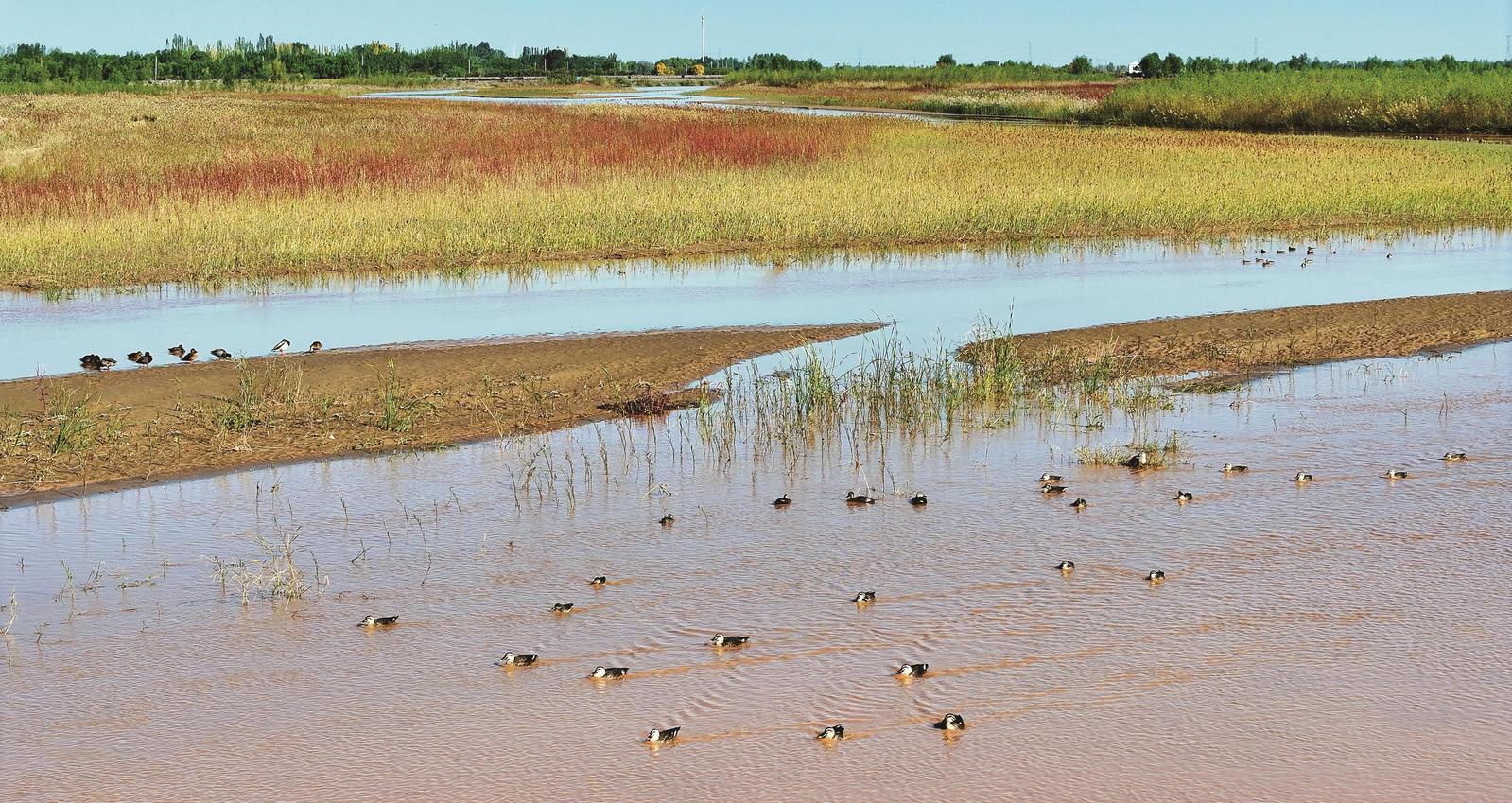 近日,黄河银川段迎来了一年中最灵动的时节——候鸟搬动季。成群的白鹭、灰雁、赤麻鸭在这里栖息,与水光潋滟的河水共舞。岸边的草木渐渐褪去翠绿,披上金黄外套,将秋日的黄河渲染成一幅颜色斑斓的生态画卷。