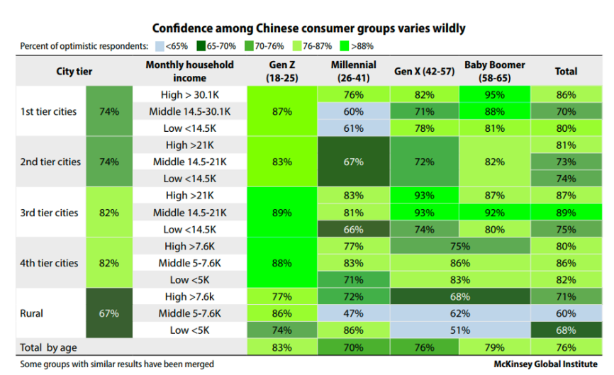 凭据麦肯锡的拜谒,中国刻下破钞最悔怨的群体,有两类,一类是被渐忘在农村的老东谈主,另一类是生活在一二线城市的千禧一代,高位买房的东谈主群。