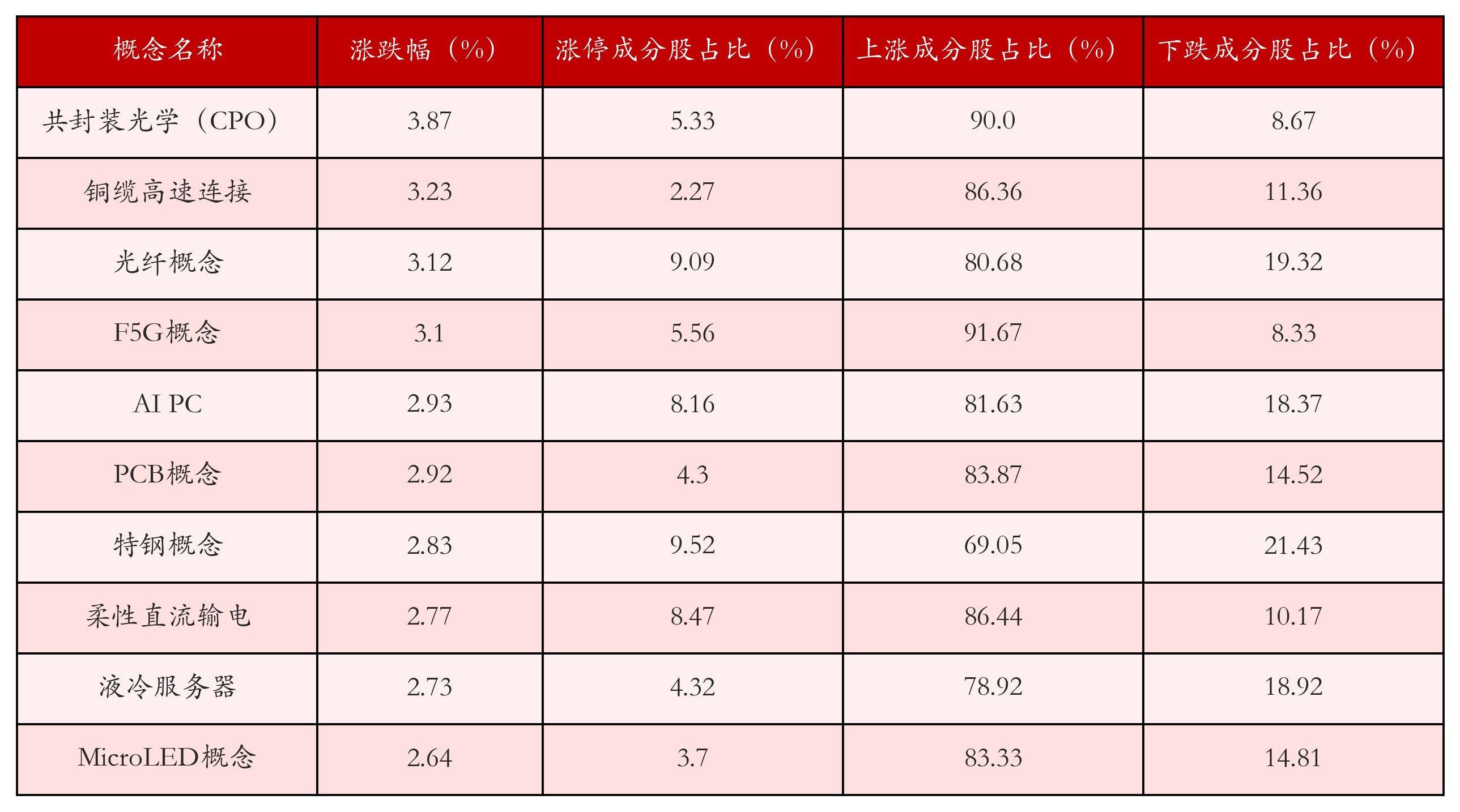 字据A股宗旨涨跌幅与所对应的股票池概括分析,涨幅靠前的三个宗旨板块诀别为:共封装光学(CPO)、铜缆高速聚积与光纤宗旨。排行前10位的宗旨板块联总计据见下表:
