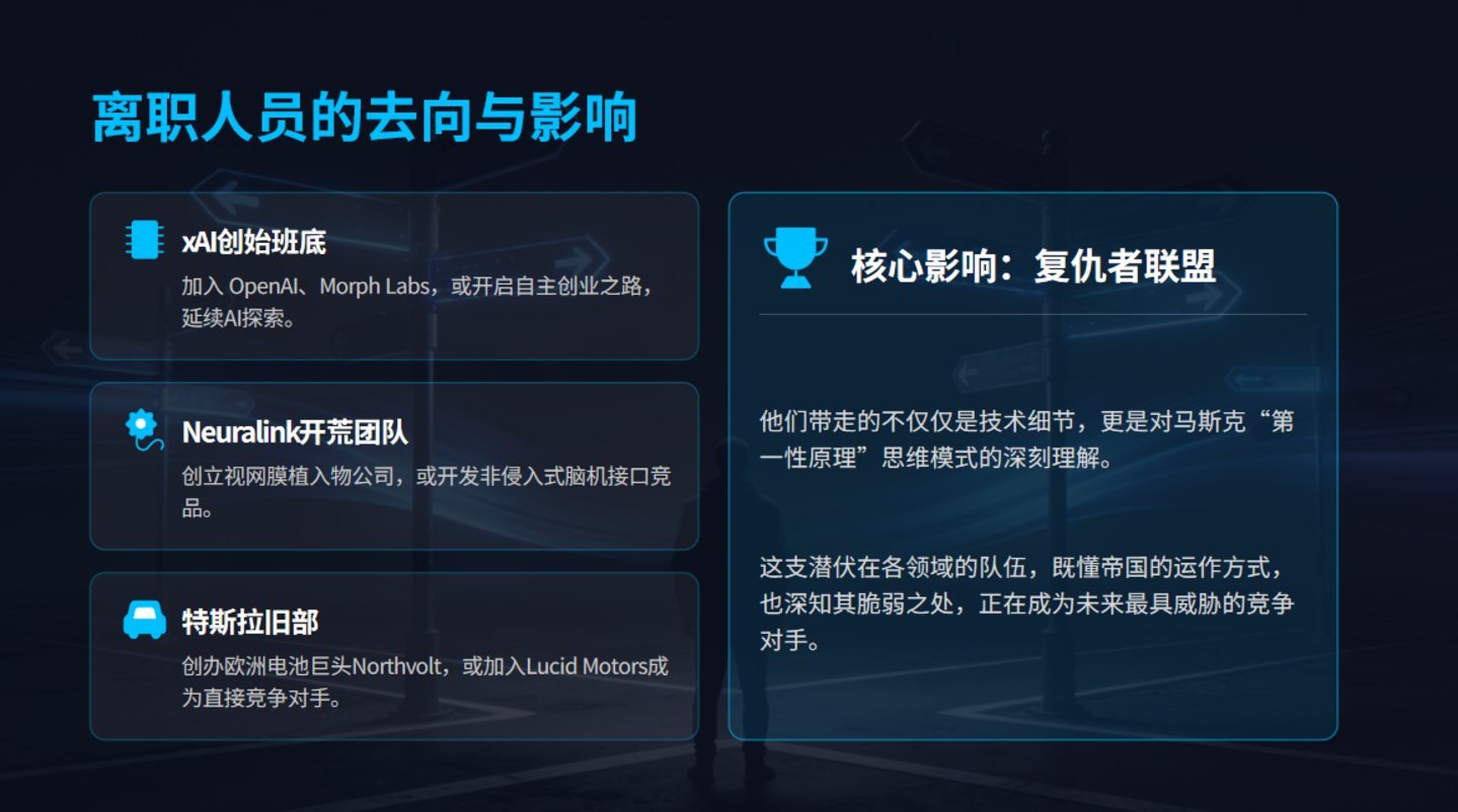 马斯克意外中培养了一支“复仇者定约”。这支定约的可怕之处在于:他们既懂帝国的硬系统是如何启动的,又深知其愿景层的脆弱接口在那边。